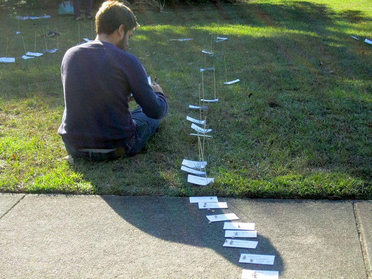 Students in Savannah, Georgia, charted their personal history timelines outdoors.